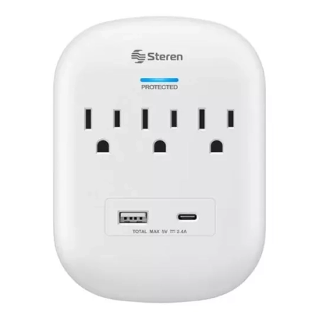 STE-MCON-155 / 905-155 Multicontacto de pared con 2 salidas y centro de carga USB y USB C Steren