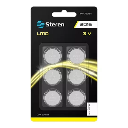 STE-PIL-CR6 / BAT-CR2016/6 Pilas de litio tipo botón CR2016 Steren 6 piezas