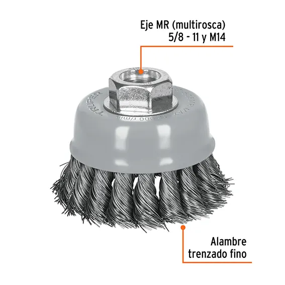 14187 / CT-610 Carda copa 4″ alambre trenzado fino eje 5/8″-11 ...