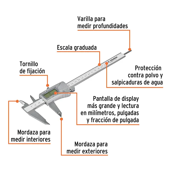 - Pantalla de display más grande y lectura en milímetros, pulgas y fracción de pulgada
