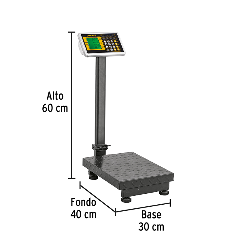 - Torreta plegable con doble display (usuario / cliente) peso, precio y total