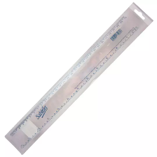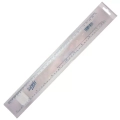 Regla con funda, graduada en centímetros y pulgadas, medidas: 31.2 x 3.8 cm.