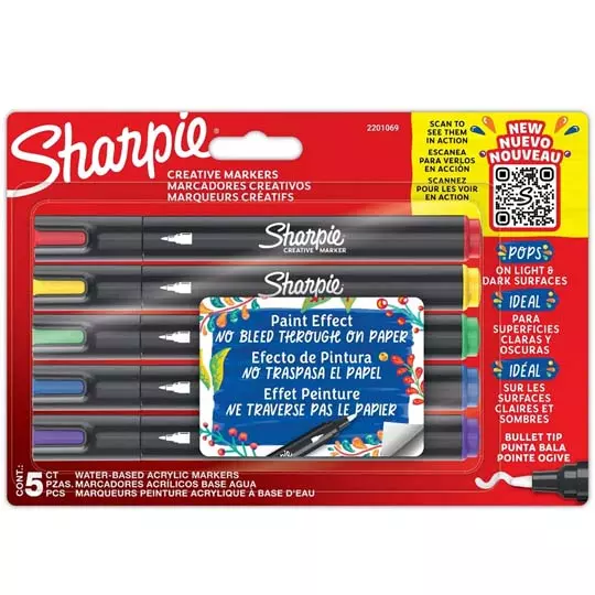Marcadores creativos de acrílico con punta bala, tinta a base agua con efecto de pintura, puedes usar un color sobre otro sin mezclarse, ofrece colores vibrantes que no traspasan papel y marca intensamente sobre casi cualquier superficie clara y oscura.