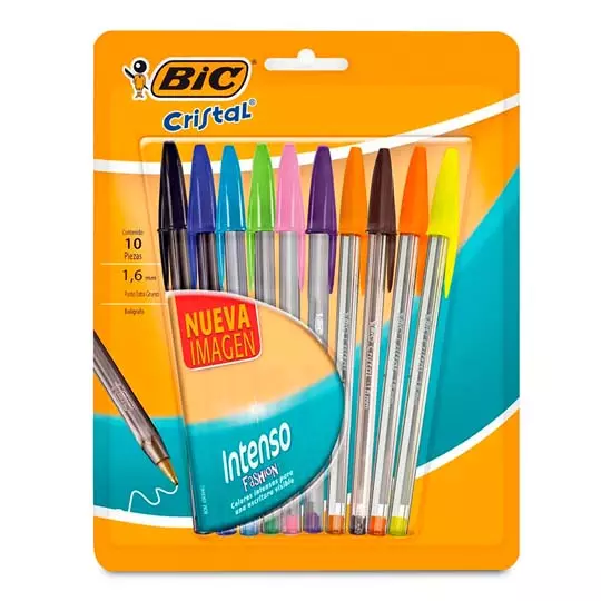 Bic Cristal Intensamente suave, punto extra grueso 1,6 mm, trazos suaves ideal para que la escritura resalte mas, barril ahumado, escritura tipo gel