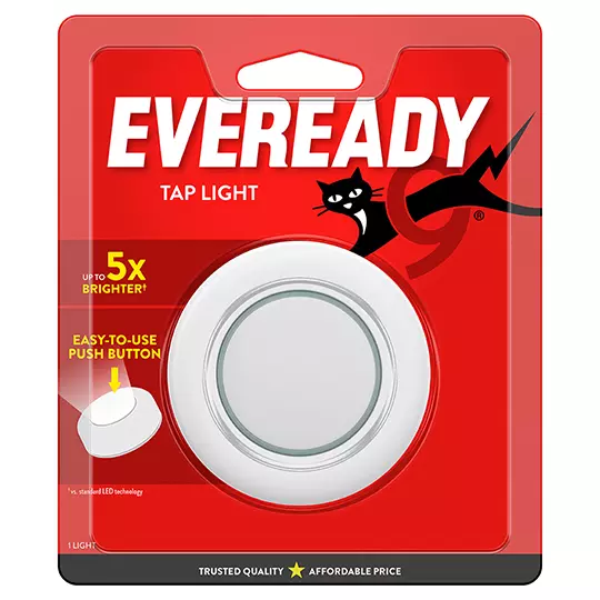Linterna autoadherible de toque Push On Eveready, iluminación led de 45 lúmenes ideal para interiores, parte posterior adhesiva que se adhiere a cualquier superficie.