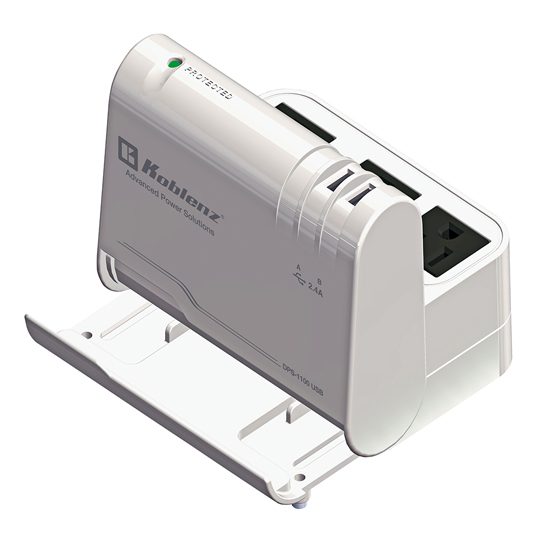 SUPRESOR ESTACION DE CARGA CON BASE RETRACTIL, 3 CONTACTOS ATERRIZADOS, 2 PUERTOS USB, INDICADOR LED DE FUNCIONAMIENTO, 1100 JOULES DE PROTECCION.