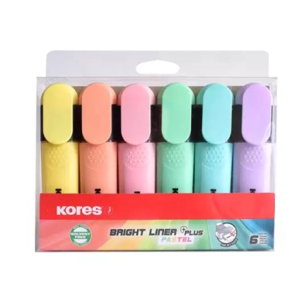 Resaltador kores pastel, tinta univardal base agua, ergonomico con grip, 6 colores paste (lima, durazno, menta, rosa, turquesa y lila).