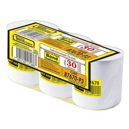 Rollo de papel térmico, centro tipo panal de plástico reciclado, medida: 76 x 70 mm, rápida impresión.