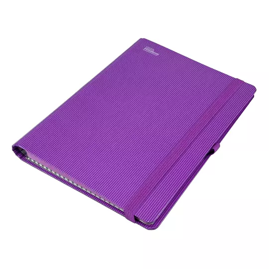 Cuaderno profesional pasta dura espiral doble metálico 200 hojas cuadro chico papel bond 70g de fuentes forestales sustentables esquina redondeadas y cinta elástica 6 colores diferente surtido (Morado, Azul fuerte, Azul claro, Verde, Naranja y Rojo).