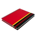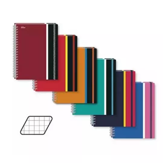 Cuaderno profesional pasta dura espiral doble metálico 100 hojas cuadro chico papel bond 70g de fuentes forestales sustentables esquinas redondeadas y cinta elástica 6 colores diferente surtido (VINO, ROJO, NARANJA, VERDE TURQUESA, NEGRO Y AZUL).