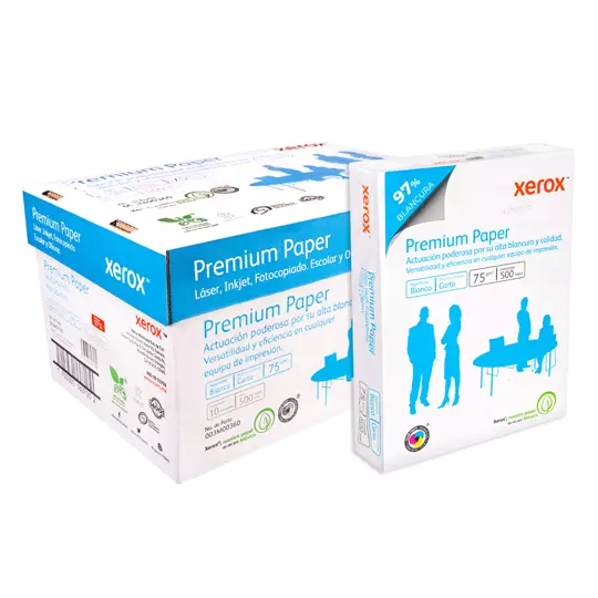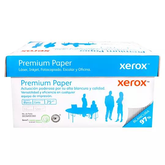 Papel cortado para impresiones en todos los equipos, mayor color touch, optimo para trabajos en casa, oficina y escolares, caja con 10 paquetes de 500 hojas c/u, medidas: 21.6 x 27.9cm. Certificaciones: NOM144 , ISO 14001, ESR, ECF, Sustentable Forest.
