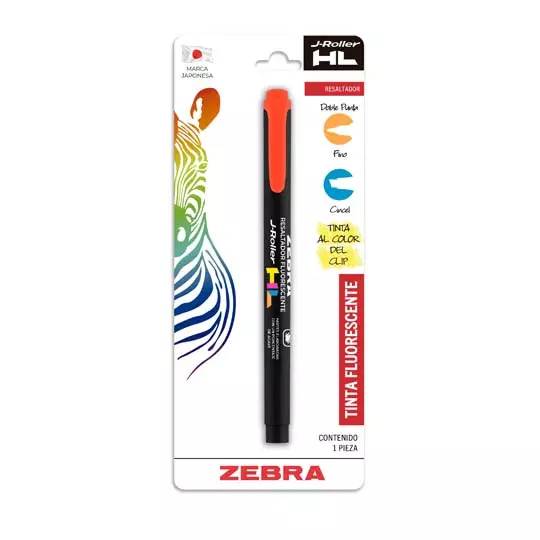 Resaltador de textos tinta fluorecente, j roller hl, doble punta punta fina y punta cincel, barril negro, partes elaboradas con un porcentaje de agave, color naranja blister 1 pieza.